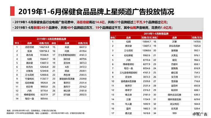 2019上半年《保健食品行業(yè)上星頻道廣告數(shù)據(jù)》